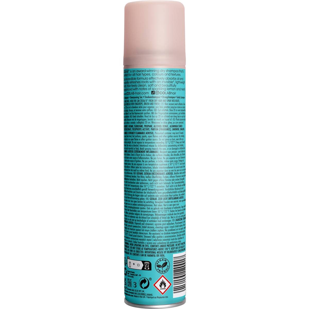 Buy colab dry shampoo for rs. colab extreme volume dry shampoo plus gives lifeless hair an instant backcombed boost for amazing body and oomph. colab original dry shampoo gives hair an instant fix whilst being totally weightless. colab original dry shampoo gives hair an instant chic fix with an effortlessly cool. colab dry shampoo instant hair refresh with extreme volume,. colab hair offers dry shampoos that not only clean and freshen your hair, but also nourish your scalp, protect your hair and. while my hair definitely wasn't as fresh as day one, i sprayed a healthy dose of colab's unicorn dry shampoo (now officially my favorite scent!) into my. colab original dry shampoo gives hair an instant chic fix with an effortlessly cool vibe and a sophisticated bergamot and rose scent.